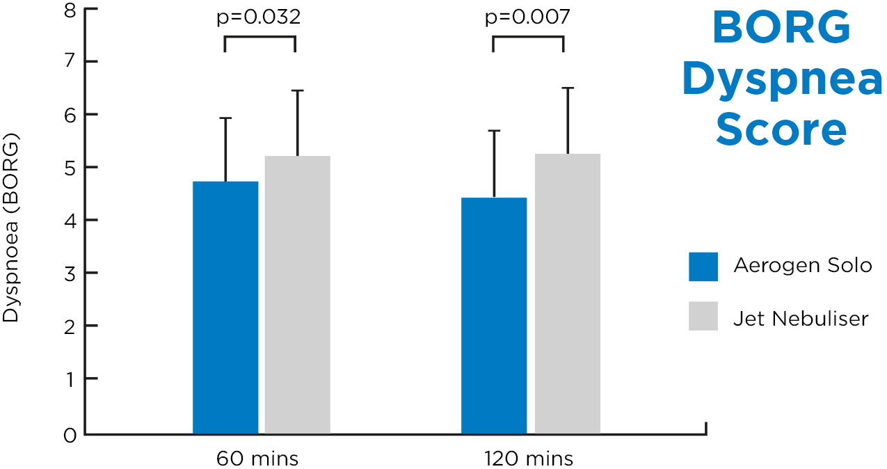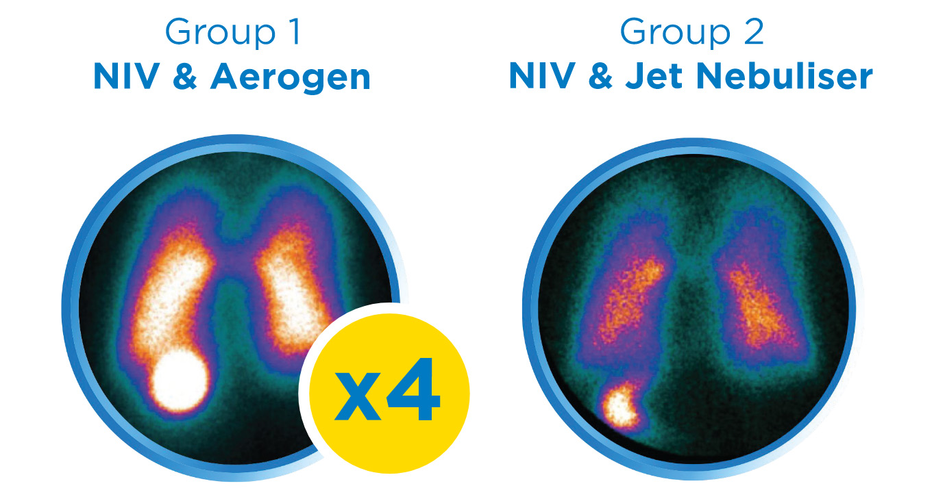 Aerogen supports improvements in patients' symptoms and bronchodilator response. In a study, aerosol drug delivery with Aerogen via NIV was associated with significant improvements in lung function (FEV1, FVC, breathlessness score, RR, and PaCO2) versus jet Nebulizers during acute exacerbations of COPD.§6